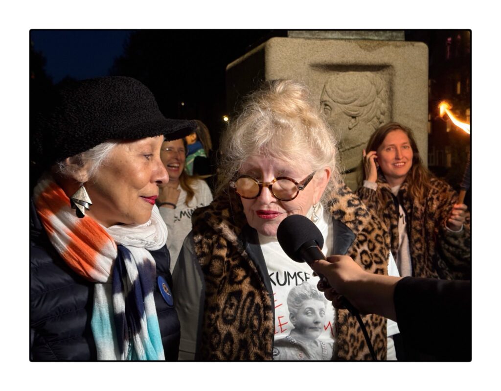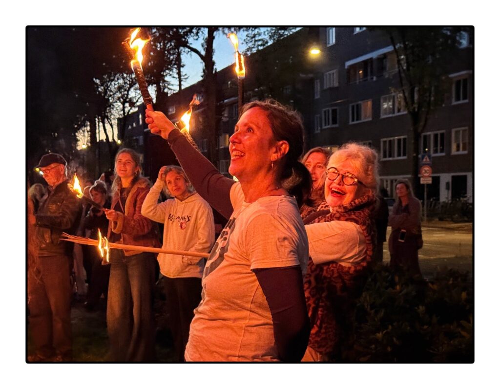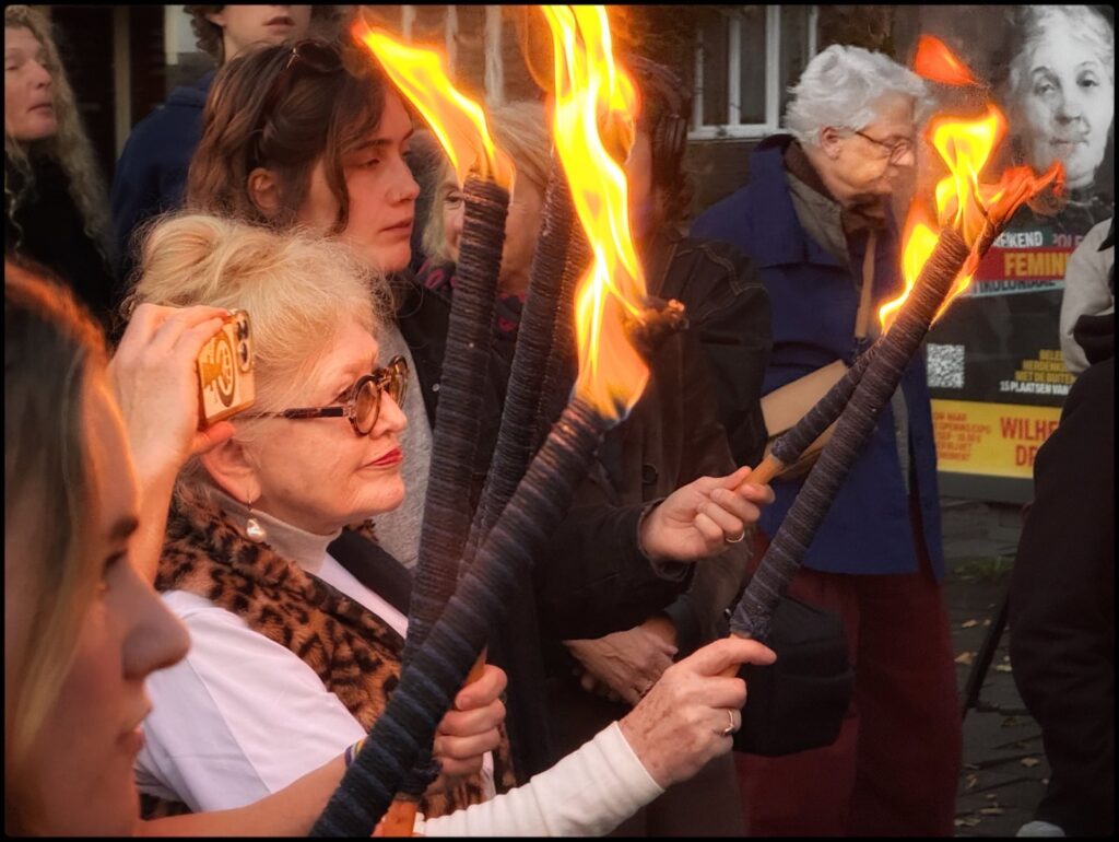 De fakkels hier bij dit monument zijn niet alleen vlammen van herinnering. Het zijn vlammen van bevrijding. Het vuur dat vrouwen oproept vrij te zijn èn gelijkwaardig.